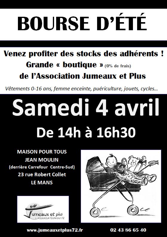 Venez profiter des stocks des adhérents ! Grande « boutique » (0% de frais) de l’Association Jumeaux et Plus