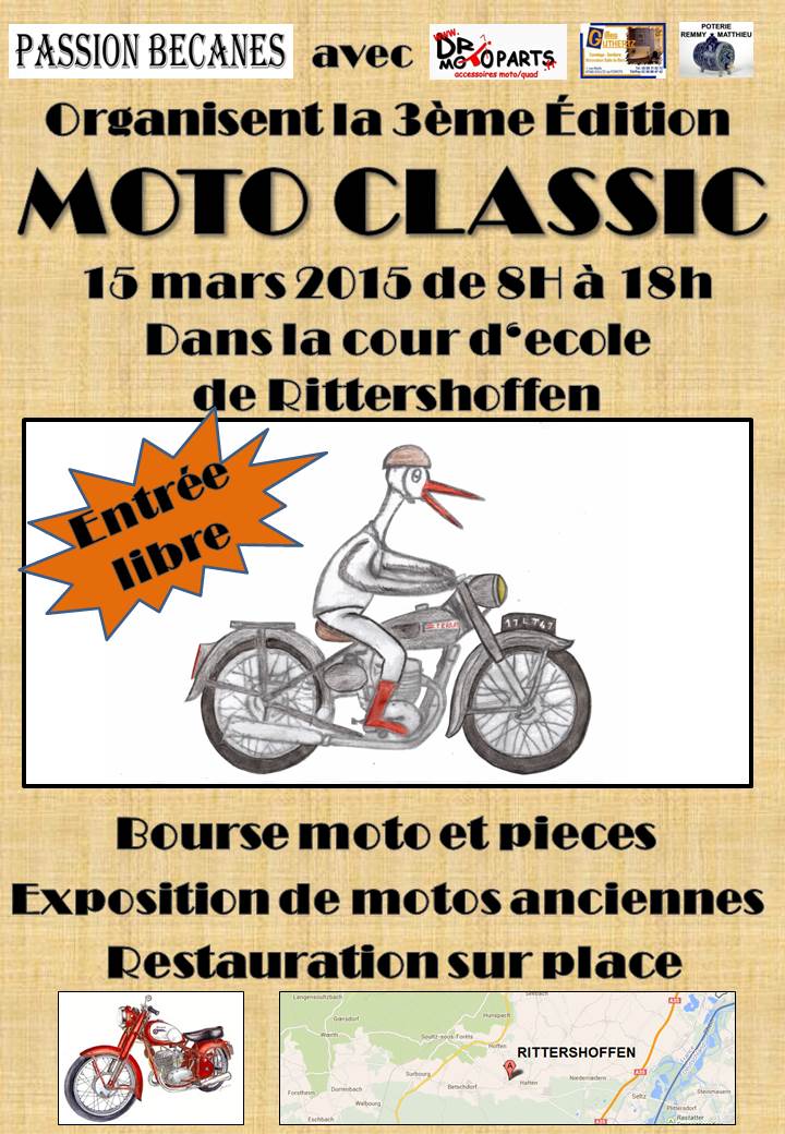 Après la réussite des deux premières éditions, la nouvelle association PASSION BECANES organise en partenariat avec DR MOTO PARTS la 3ème bourse-exposition MOTO-CLASSIC.