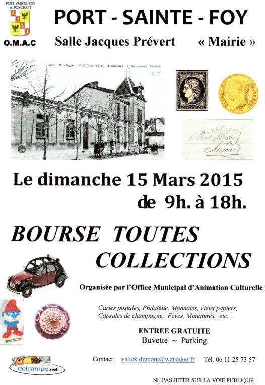 Bourse toutes collections à Port - Sainte - Foy (33220)Cartes postales, Philatélie,Monnaies,Vieux papiers,Capsules de champagne,Fèves,Miniatures,etc...