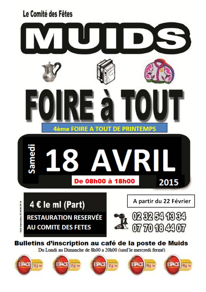 Inscriptions et réservations au café de la poste de Muids à partir du 23 février 2015Envoyer un mail à un membre organisateur de l'événement