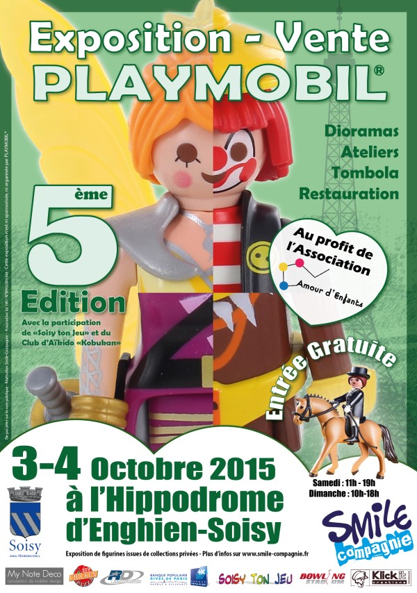 Sur près de 1800 m2, l’association Smile-Compagnie qui regroupe des bénévoles passionnés de jouets Playmobil®, va proposer au plus large public des scènes réalisées à partir de ces jouets indémodables. Le temps d’un week-end, des milliers de figurines, des tonnes d’ingéniosité et de talent, des dioramas de rêve pour petits et grands seront donc accessibles en visite libre à l’hippodrome d’Enghien-Soisy, ouvert gratuitement pour l’occasion. Outre le fait de pouvoir s’émerveiller devant des scènes inédites de l’histoire ou de mondes imaginaires, le public pourra également trouver des Playmobil® d’occasion, des pièces rares, des pièces détachées, des versions importées, sur les nombreux stands de ventes proposés.