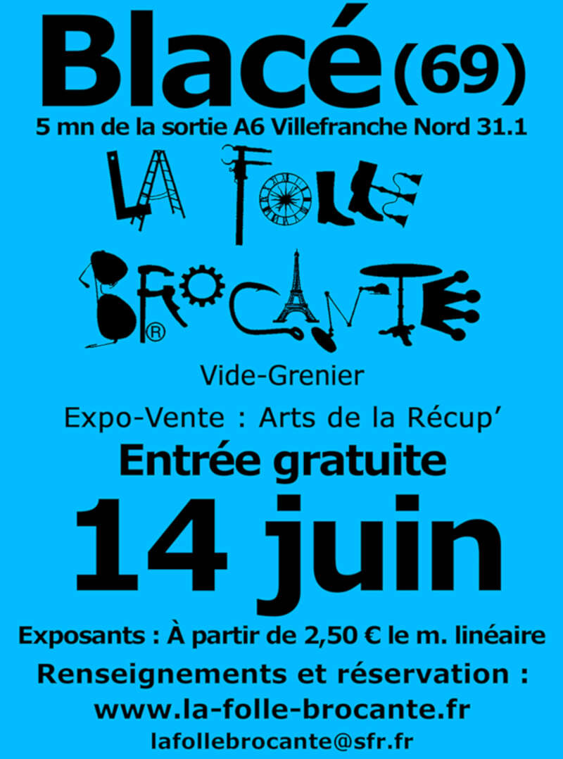 La Folle Brocante (marque déposée à l'INPI) la vraie, l'originale propose sa 7ème édition. Elle est née le 14 juin 2009 à Blacé. Toute autre "La Folle Brocante" est une imitation.