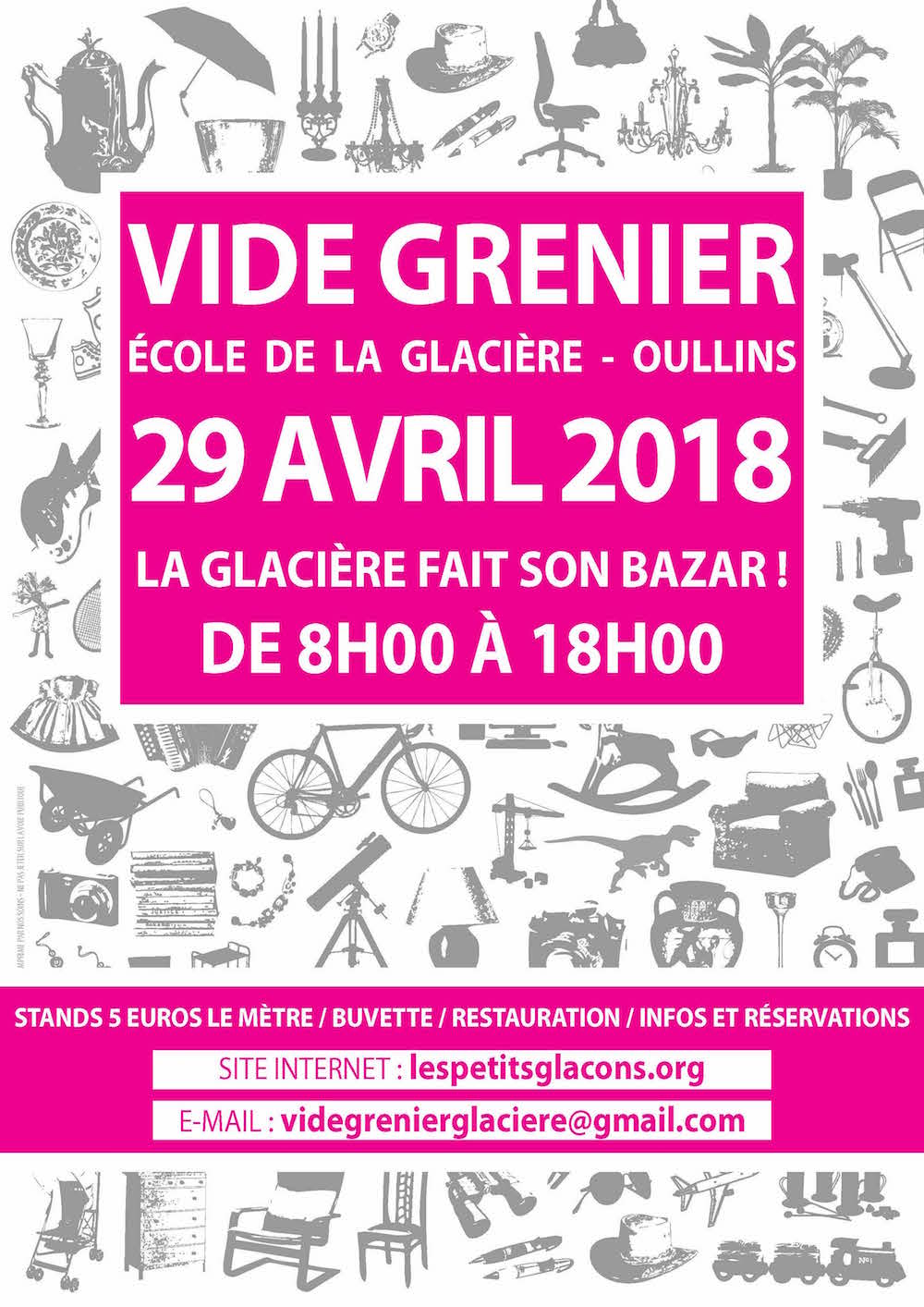 Le dimanche 29 avril 2018, l'Association des Parents d'Élèves de l'École de la Glacière (Oullins) organise le 6ème Vide-Grenier "La Glacière fait son Bazar".